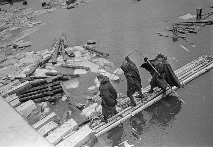 5-я армия. Переправа на плотах через реку в районе Можайска.