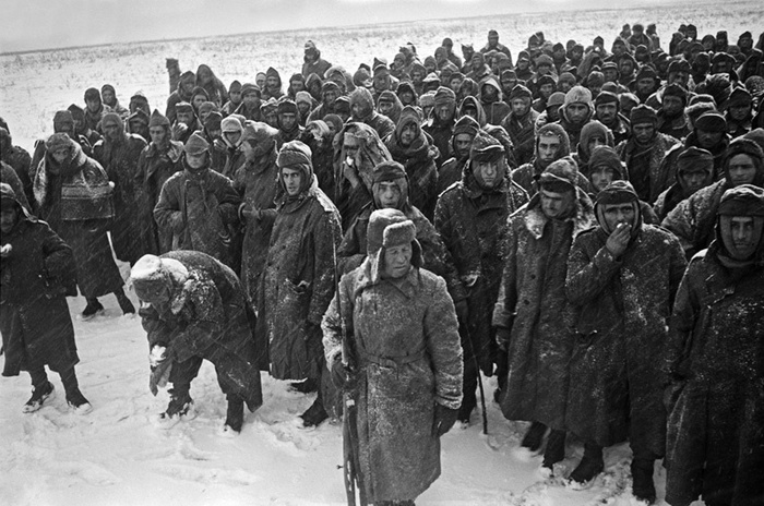 Колонна немецких военнопленных под Москвой. Волоколамское направление.