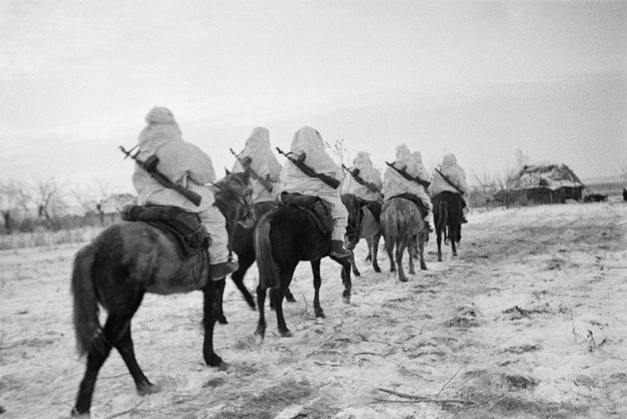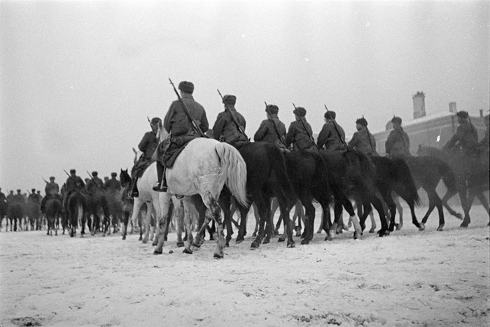 Бои под Москвой. Дата съемки: 1941 год. Конная разведка.