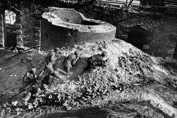 А в ВС гитлеровской Германии в это время все большее распространение получал новый вид спорта: как можно быстрее подальше убежать от русских и сдаться в плен американцам. Особенно усердствовали в этом подразделения Ваффен-СС, которые вполне справедливо полагали, что миловать их бойцы Красной Армии не станут. Однако удрать было суждено не всем - тем, у кого не получалось, оставалось только драться.