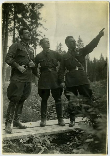 «У командного пункта. В это время 18 фашистских самолетов Ю-88 совершили бомбежку города Клин». Дата съемки: июнь - август 1941