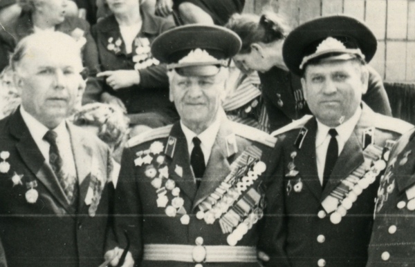 На 28.12.1927 товарищ Крючков являлся сотрудником группы по борьбе с бандитизмом Проскуровского ОКРО ГПУ УССР. Был награжден орденом Боевого Красного Знамени. Василий Иванович сидит крайний справа.  На груди видны значки ГТО и Ворошиловский Стрелок- воин уже средних лет поддерживал себя в отличной физической форме.