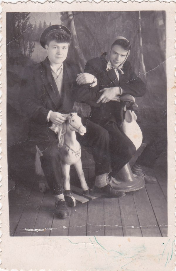 6. Владимир Петрович с другом веселятся. 1961 год.