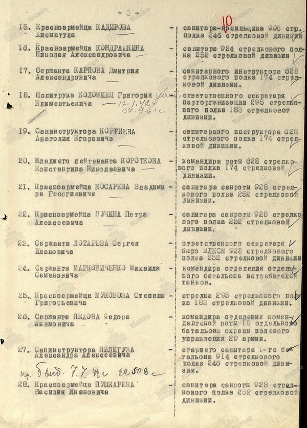 Документы о награждении медалью "За боевые заслуги" 1944 г.
