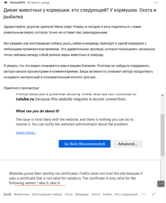 Если ранее просто любые ролики с рутуба на пикабе проматывал, поскольку (см на скрине подчеркнутое - следы митм-атаки киберотдела местной гебни (нксц))