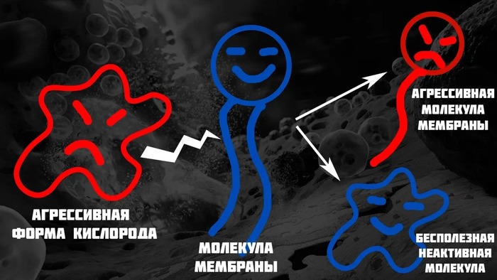 4. АФК начинают бесконтрольно атаковать "здоровые" молекулы клетки, будь то ДНК, РНК, элементы мембран или ферменты;