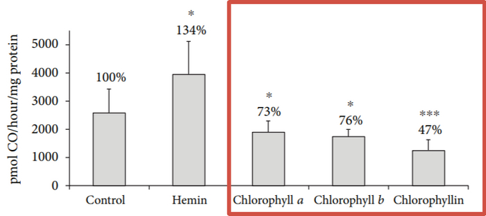 Хлорофилл эффективен благодаря его антиоксидантной активности, а также способности подавлять экспрессию главного про-воспалительного цитокина TNF-α.