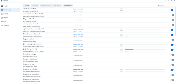 Потом спустя пару лет на глаза попался Synology DS918+ по сладкой цене. Штука гораздо серьезнее предыдущей. Софт поддерживал разворачивание виртуальных машин и докер контейнеров. Тут и пришло понимание, что даже при 16 гигов ОЗУ она не сильно тянет виртуалки и докер контейнеры. С той поры я начал смотреть на профессиональные сервера, которые оказались дешевле, мощнее, и масштабируемее (можно делать поэтапный апгрейд).