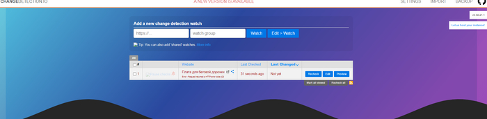 changedection.io - тулза мониторит избранные страницы или сайты на предмет изменений.