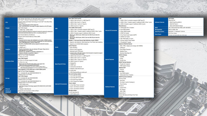 Всего в линейке Prime с чипсетом Z790 значится 14 моделей. Восемь плат с литерой «P» в наименовании – базовые версии платы, которые незначительно отличаются друга от друга типом поддерживаемой памяти (DDR4 или DDR5) и вторичным обвесом. Четыре младшие модели у урезанной комплектацией – обозначены литерой «V» в наименовании. Есть и старшие платы с литерой «A» в наименовании. Их всего две, и они наиболее сильно отличаются от других плат линейки.