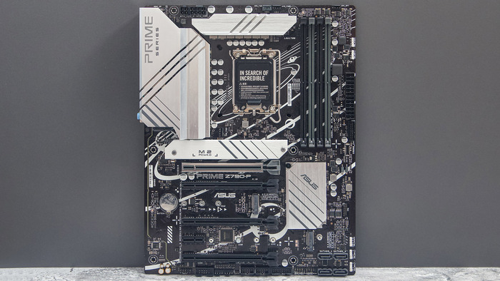 ASUS Prime Z790-P с демонтированными радиаторами выглядит скромно.