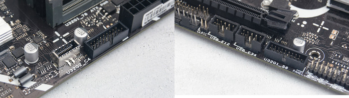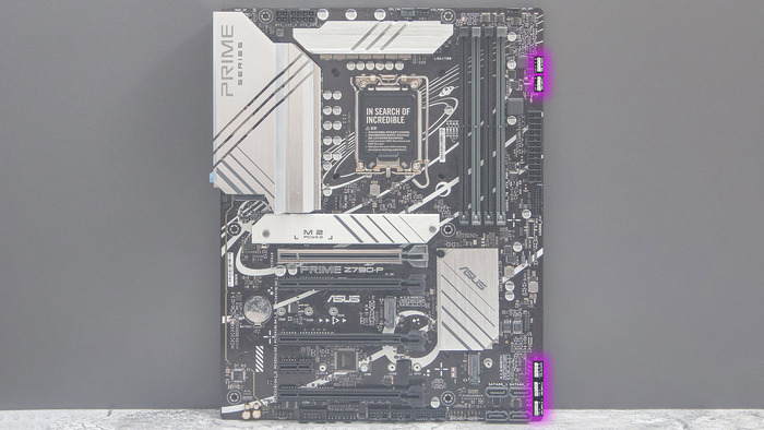 Колодки для USB у платы Prime Z790-P представлены с избытком: пара для USB 2.0 (4 разъема), пара для USB 3.2 Gen1 (4 разъема) и одна USB 3.2 Gen2x2 (Type-C).