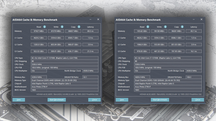 Что касается разгона памяти, то комплект ADATA XPG Lancer Blade RGB 2x16 ГБ стабильно работал на плате ASUS Prime Z790-P на частоте 7200 МГц при таймингах CL36. При этом я не тратил много времени на настройку таймингов и подбор напряжений. К слову, этот же комплект памяти работал на таких же настройках и на более старшей ASUS TUF Gaming Z790-Pro WIFI.