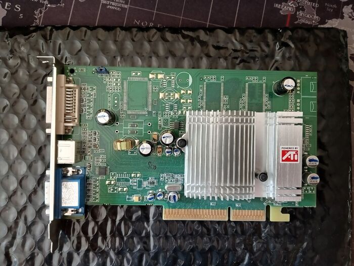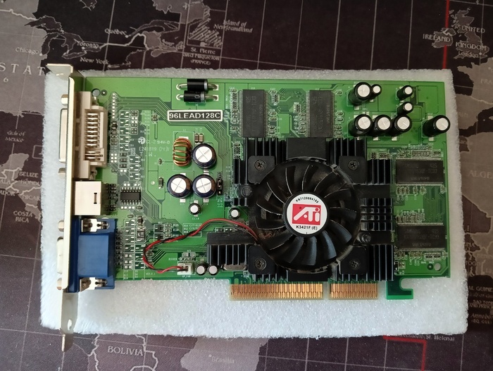Прикольный мутант... Вот как раз такой Радеон подвержен внезапным глюкам и "проблемам с драйверами". Интересен тем, что на нем распаян ATi Mobility radeon 9600. Соответственно работает только с ноутбучными дровами. 😁