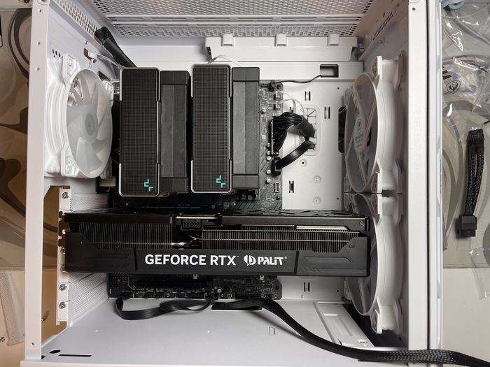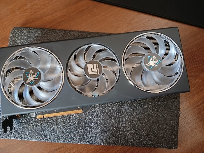 Случилась две недели назад распродажа на озоне и деньги свободные появились внезапно, да и дочкин комп апгрейдить пора... PowerColor Hellhound RX7700XT 12 ГБ. Да... поверколоры все так же могут делать вещи! Тихая, холодная, единственный минус длинная - тяжелая и провисает. Надо подпорку! 😁