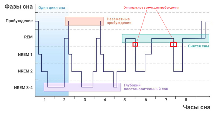 Все мы слышали про то, что существует две стадии сна (быстрая и медленная), и что они образуют один цикл длительностью 1.5 часа. И даже многие пытаются подгадать момент подъема под завершения цикла сна (например, спать 5 циклов = 7.5 часов).