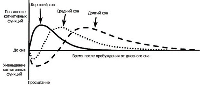 На графике ниже показано, как дневной сон влияет на когнитивные функции (память, способность концентрироваться и тд).