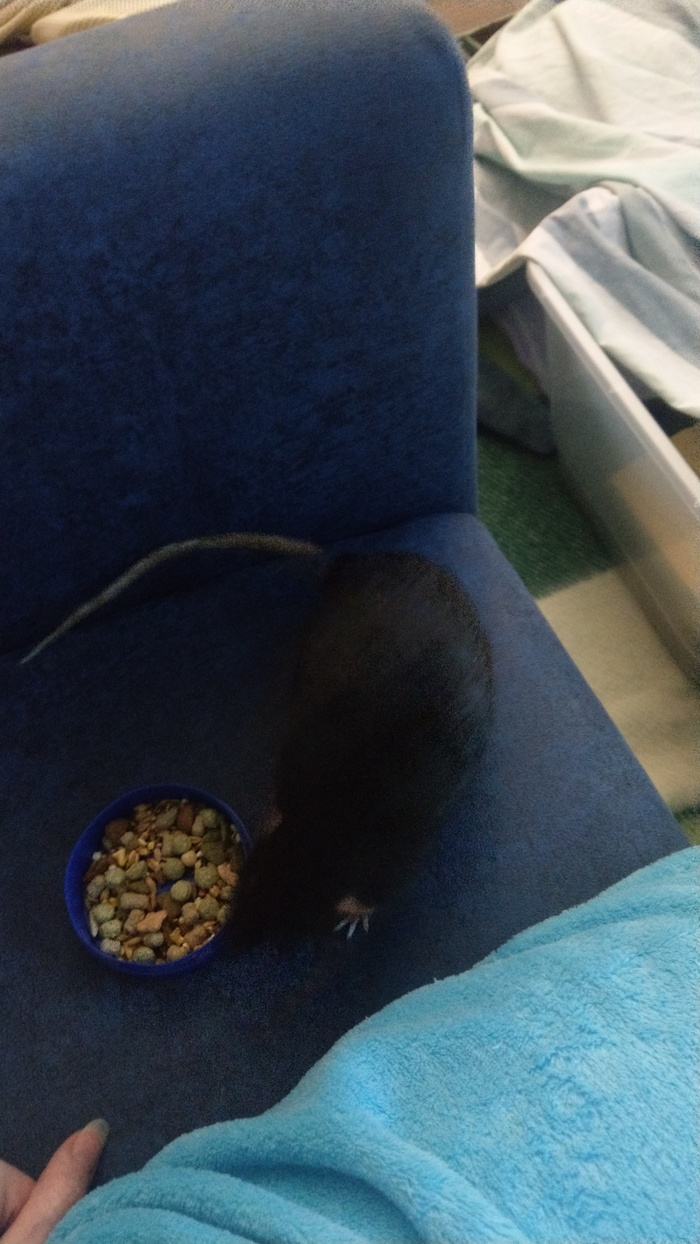 Это не первая у нас крыса. Но эта кусается. Не сильно, но ощутимо, слегка даже кожу может подранить.