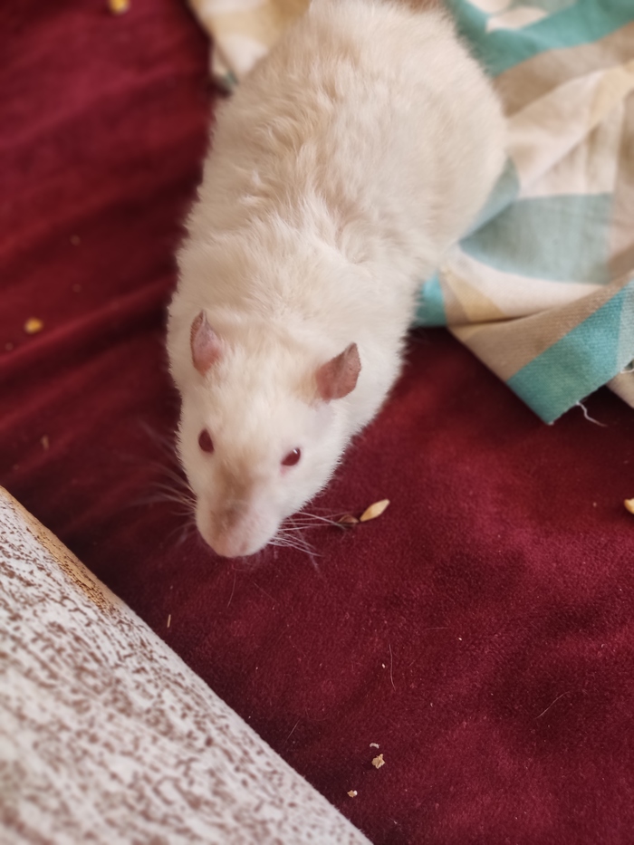 Вот и Маша(серая) ушла от нас, Даша осталась одна. В этой небольшой клетке они только спят, постоянно в зале на свободном выпасе. Прожила 1 год и 9 месяцев, поздно вечером перегрызла провод от компьютера, шибануло её током, минут 20 вся взъерошенная была, попискивала потом вроде оклималась... Утром в 7 стала лежать на боку и отталкивать сестрёнку (всегда в обнимку спали) взял ее на руки, пригрелась, расслабилась и в 10 у меня на руках ушла. Дашенька теперь по всей комнате бегает и ищет, они никогда не расставались, когда одна из них болела: другая ее грела, чистила и не отходила даже гулять одна, лежали вместе в ОТКРЫТОЙ клетке и не бросали друг друга... Как теперь выживет Даша?