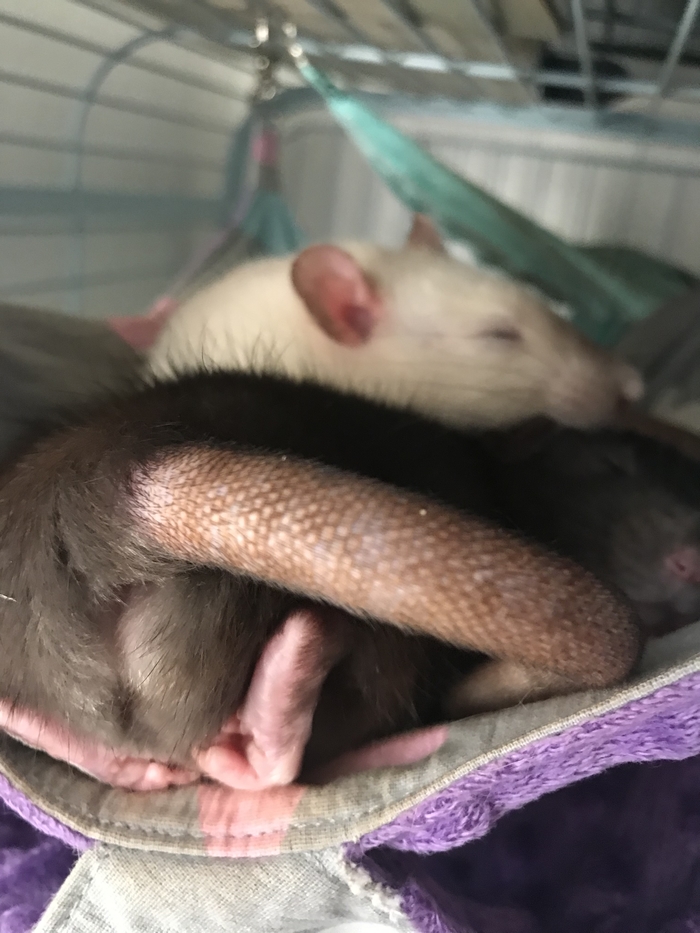 А крыс кайфует, перемещается то у мамы на плече, то в рюкзаке, где у него туалет и все съедобные нычки.