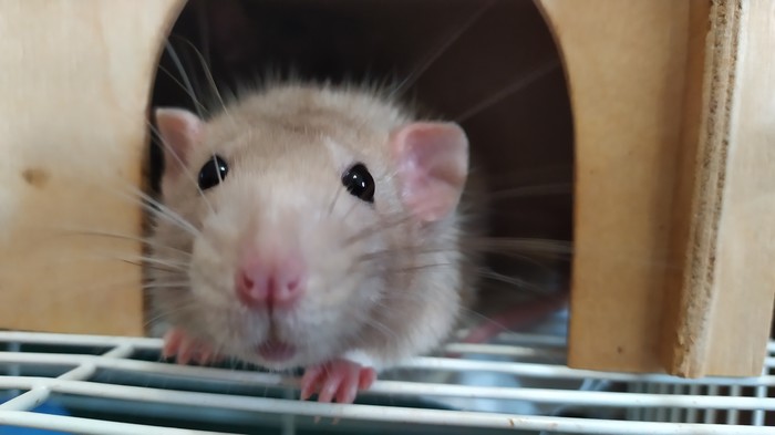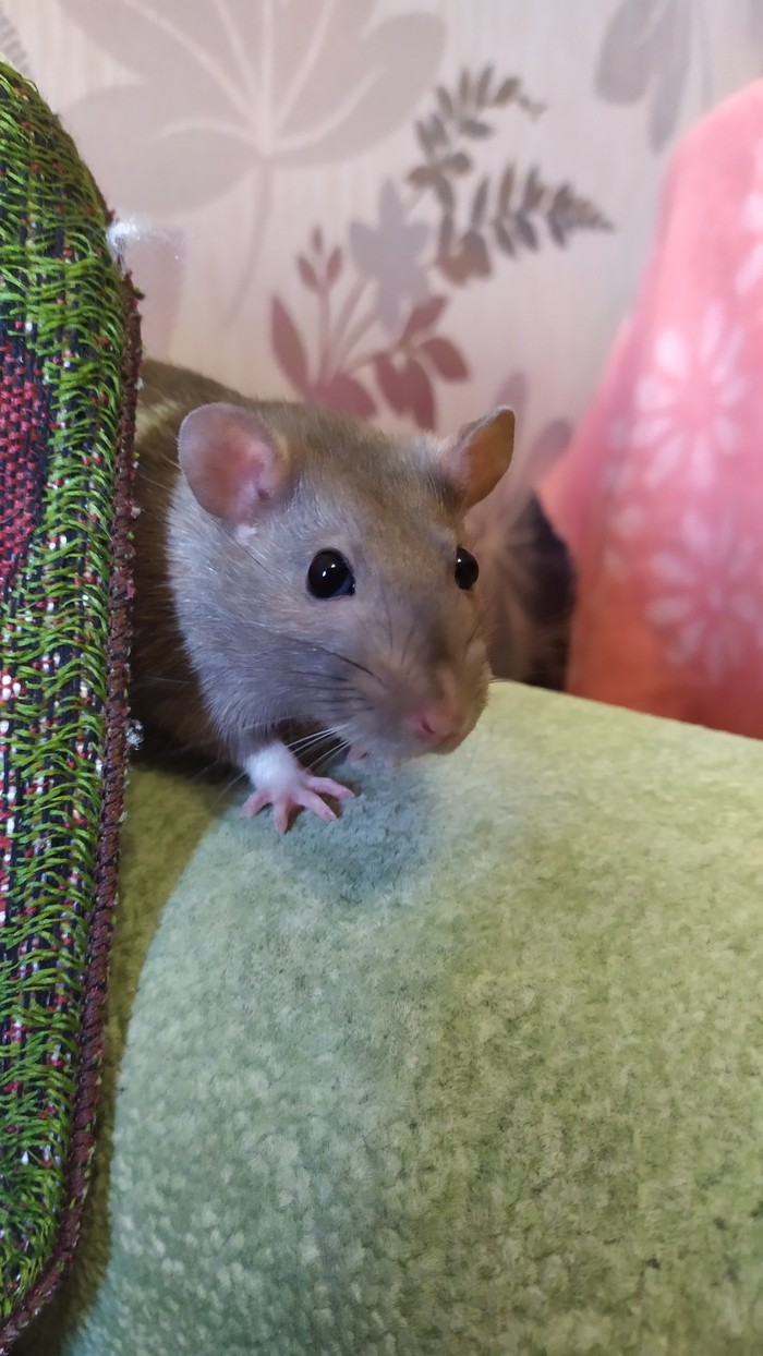 4ый мальчик. Моя любовь, очень необычный крыс. Окрас Минк, маркировка баджер с шлейфом, уши дамбо, шерсть стандарт. Крупный ребенок, у которого еще и разные глаза. Обожает есть, много есть. Ленивый, спокойный-это все не про него, за час прогулки по кровати, я 3 раза снимала его с штор, 4раза с подоконника, n количество раз с себя.