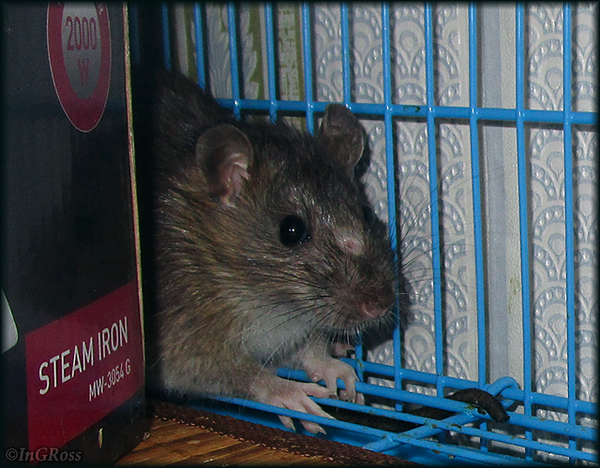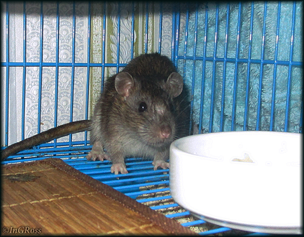 Натворил сегодня дел, засранец. Опрокинул миску с водой (поилки не знает пока). Пока я протирал и убирал, он осмелился выйти обнюхать руку, за что был нещадно поглажен по спине и холке. Осмелев еще сильнее он понюхал пальцы и поставил на руку лапу, за что был нежно щелкнут по носу. От такой невиданной смелости, Дюк малость пришалел, и решил сныкаться (от греха подальше) и бояться забившись в дальний угол коробки (в которую он вообще на заходит, кстати). ^_^