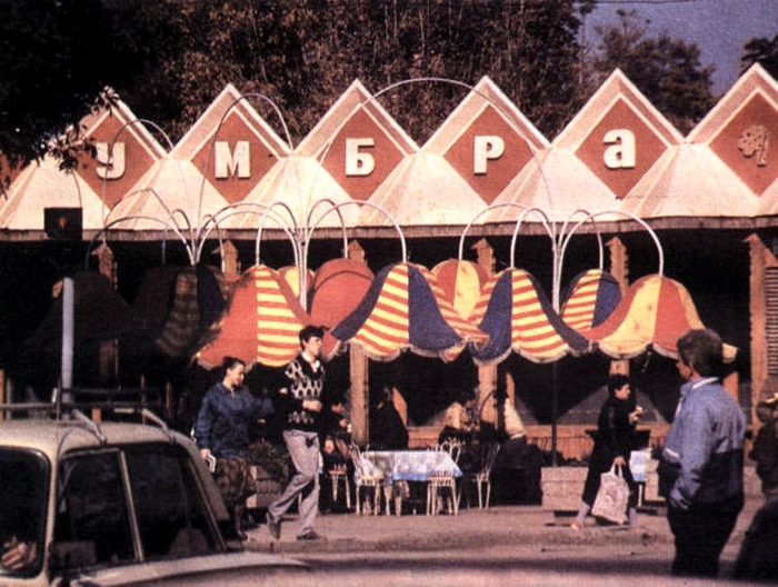 8. А вот это - кафе "Снежок". Моё любимое. В "Сказке" вазочки для мороженого были пластмассовые, цветные, а тут - металлические, блестящие. Плюс белые стулья с высокой узорной спинкой, которая приятно пружинила, если на нее опираться. А еще тут подавали нереально вкусный молочный коктейль с пенкой, в высоких стеклянных стаканах с разноцветными соломинками. И хоть тут я бывал гораздо реже, может, раз пять за всю жизнь, но помню детали до сих пор очень отчетливо.