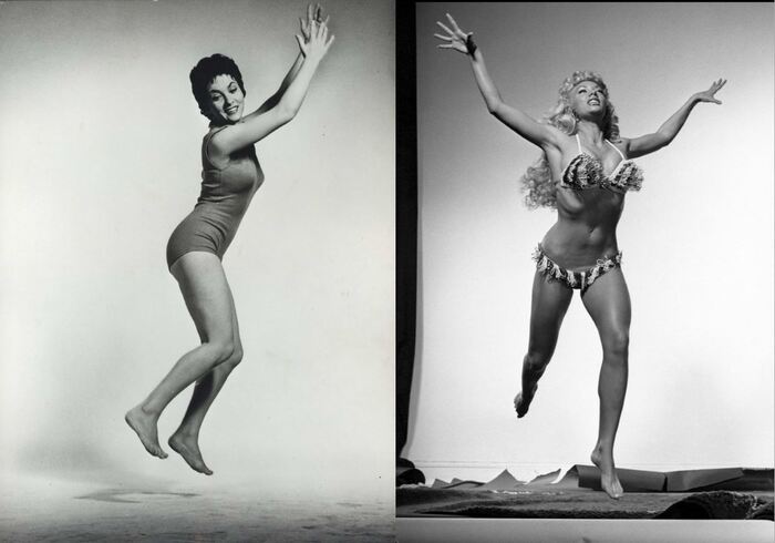 Итальянская актриса Джина Лоллобриджида и Лили Кристин, девушка-кошка.