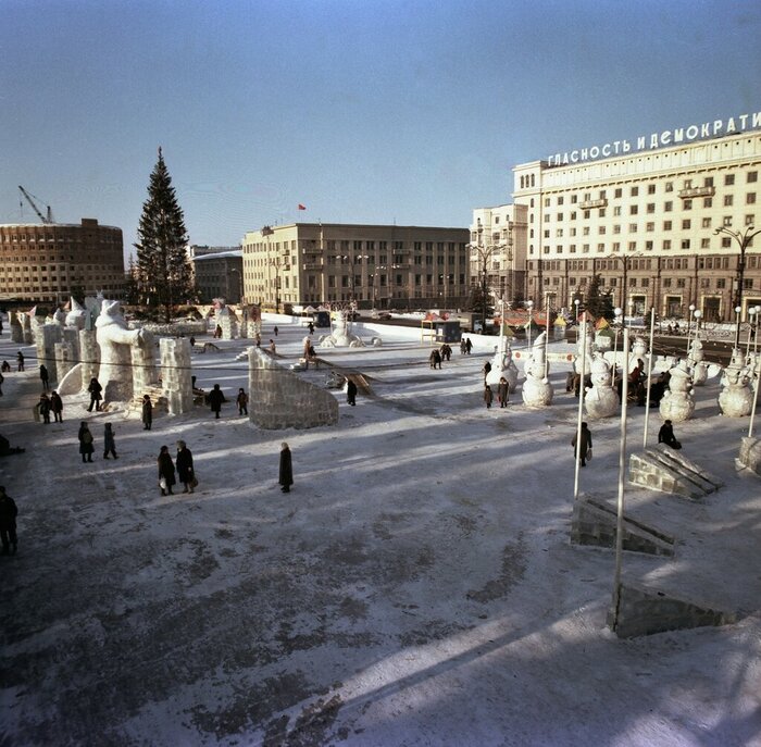При низких температурах полароид искажал цвет, но это никого не останавливало. Снежный городок
