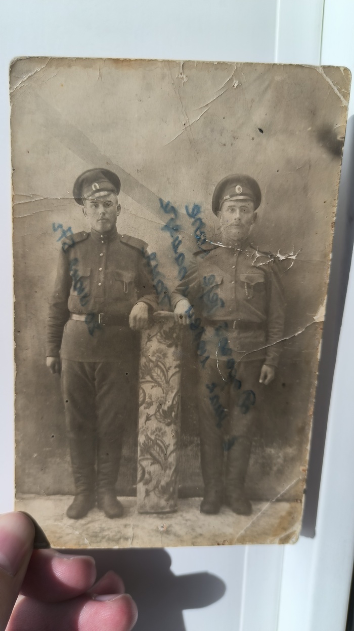 Общался с бабушкой тут, показала мне фотку одного из братьев (слева) её деда. Получается брат моего прапрадеда, фото сделано 27 марта 1917 года.