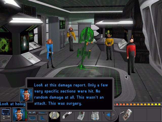 На этом фоне удивительно, что Spectrum HoloByte (материнская компания MicroProse) отнеслась к своему проекту совсем иначе: 30 июня она выпустила игру "Star Trek: The Next Generation – A Final Unity", которая стала настоящим подарком для фанатов вселенной "Star Trek". Её отличала тотальная верность духу и канону сериала. Озвучкой занимались семь главных актёров Star Trek: TNG; у игрока была возможность гулять по звездолёту "Энтерпрайз", управлять им, перемещаясь по галактике, сканировать аномалии, вступать в космические сражения, высаживаться на поверхность планет и погружаться в приключения там - в общем, это был сплошной праздник, созданный качественно, с уважением к оригиналу, высоким уровнем детализации и без каких-либо ляпов.