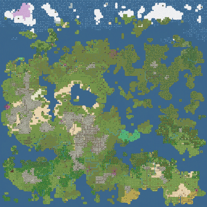 Ну и напоследок пример карты сгенерированного мира размером 128х128 тайлов.