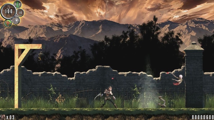 В качестве оружия Аврора использует хлыст в стиле Castlevania, но Anathema - это не metroidvania. Это гораздо более олдскульный платформер, похожий на Ghosts n 'Goblins и Mega Man X. Текущая версия игры предлагает много геймплея с большими уровнями населенными различными монстрами, секретными локациями, сложными платформенным геймплеем и большим боссом в конце их.