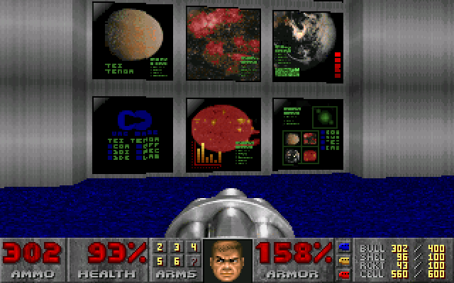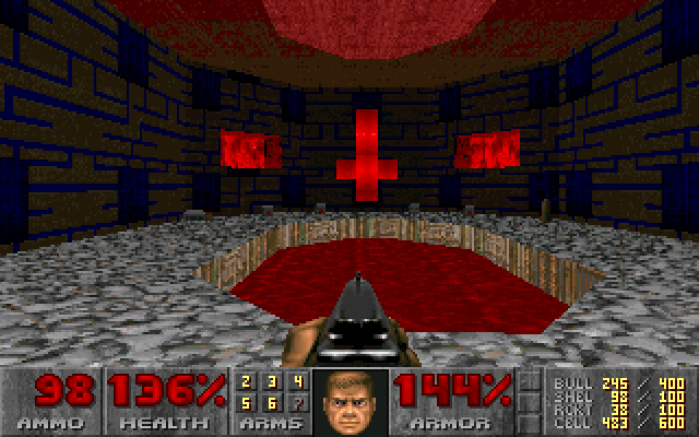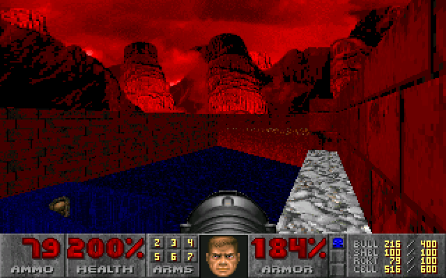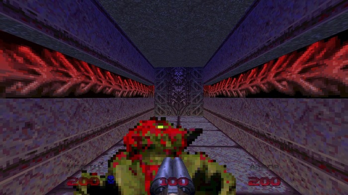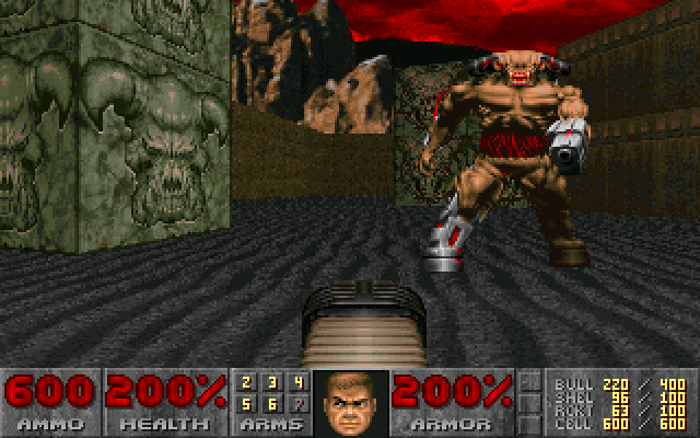 Строго говоря, DOOM всё же псевдотрёхмерный и имеет свои ограничения: герой не может прыгать вверх и менять угол обзора по вертикали. Но это совсем не мешает игроку погрузиться в фантастическую реальность и воспринимать окружающее пространство трёхмерным.