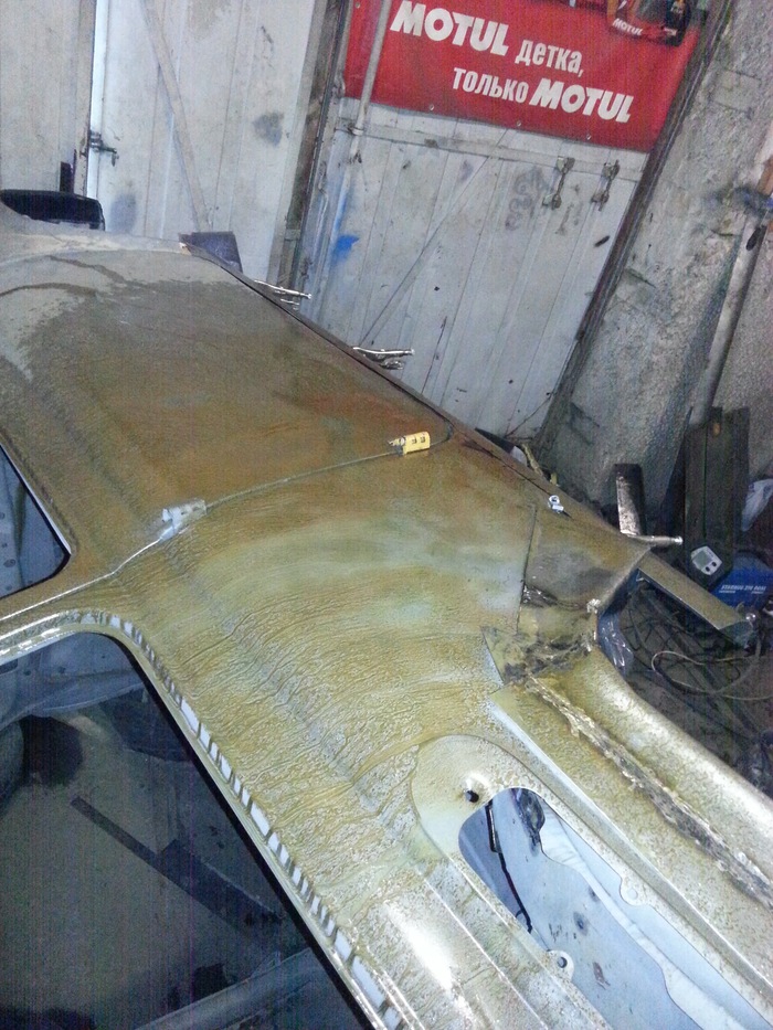 Притащили к себе на эвакуаторе и почти 3 месяца мы не решались его делать, казалось он и так хорош. Но после замеров оказалось, что шпаклевки на нем очень много, да и кое где геометрия была странная. И началось..... Полная разборка и отправка кузова в пескоструй.