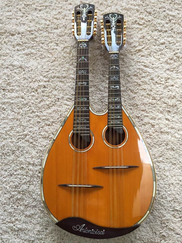 Гитара-мандолина. Не нашел фото в хорошем качестве, но вот здесь можно посмотреть экспонаты из университета Йеля. Там, в том числе, гитара-мандолина 1890 года + чертежи
