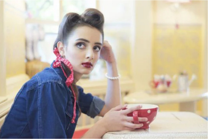 Многие прически в стиле рокабилли черпают вдохновение у знаменитых моделей эпохи пин-ап. И челка с V-образным вырезом не исключение.