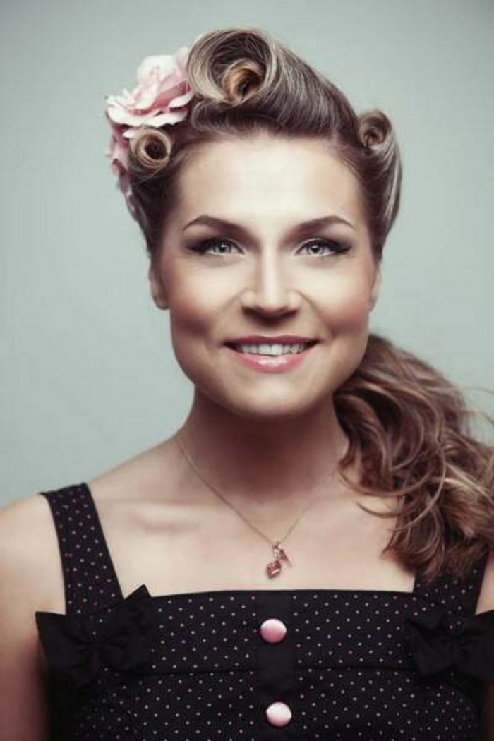 Создайте из классической "V-rolls" несколько завитков, а остальные волосы соберите в хвост, украсив заколкой, чтобы создать по-настоящему женственную эстетику 1950-х годов.