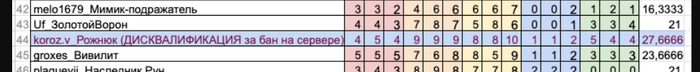 Как вы поняли из скринов - меня дисквалифицировали за бан на сервере. Бан я там получил где-то полгода назад по своей вине. В лёгком состоянии алкогольного опьянения грубо разругался с амдинистраторами этого сервера. Свою вину признаю, их действия принимаю.