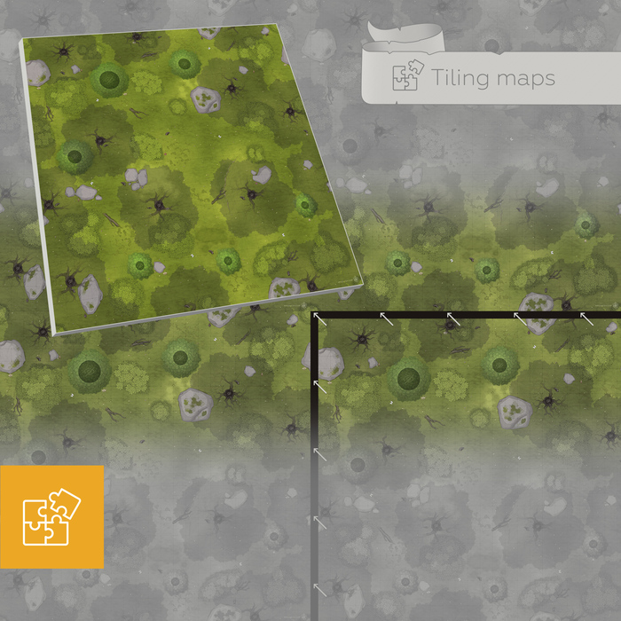 Все карты из наборов с одинаковым названием совместимы между собой (части 1-5, все стили), поэтому игровую карту можно нарастить, подставив с любой стороны карту из подобного пака.