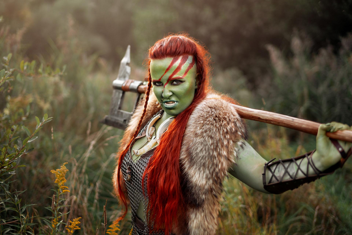 Полуорк щелкает пальцами, на мгновение одно из колец на его руке сияет алым и в руке появляется секира, что только секунду назад покоилась на своем почётном месте. Могучая рука наклоняет наполированный обух и в нём виднеется ваше с Крихом отражение.