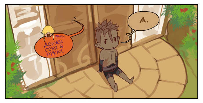 За стойкой был мини-совет. Ари высказала здравую мысль что нужно разделиться для сбора информации. Лайт предложил пойти поговорить с работягами-грузчиками, ибо сам работал в этой профессии, Ари и ее вездесущий хранитель Клоп решилл пойти в местный храм, а Гром и Стили прогуляться по городу. Также Лайт сообщил о том что услышал из разговора хозяев, казалось обычные семейные дела, но нужно держать ухо в остро с Бреттом. Компаньоны недоуменно посмеялись над Лайтом.