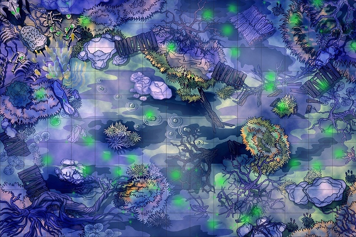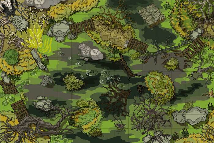 Трейлер Большой карты. Ужасное болото. Островки, кочки, разбитые мосты, заросли тростника, коряги и камни, следы чудовища на берегу, храм и жертвенный камень... Пузыри на воде. Кто тут появился и всех разогнал?