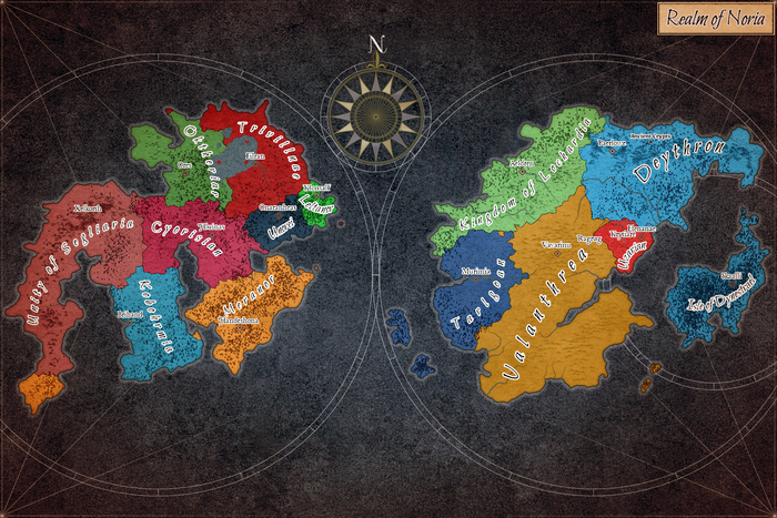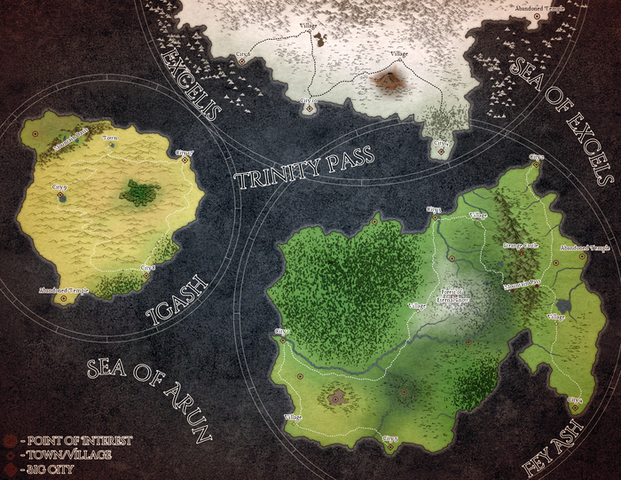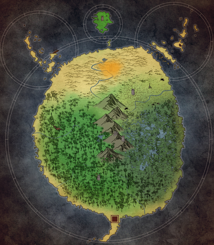 В этой карте, сделаной для днд кампании, одна из особенностей в том, что в мире появились аномальные биомы, как вулканический на севере, джунгли посреди пустыни и т.д.