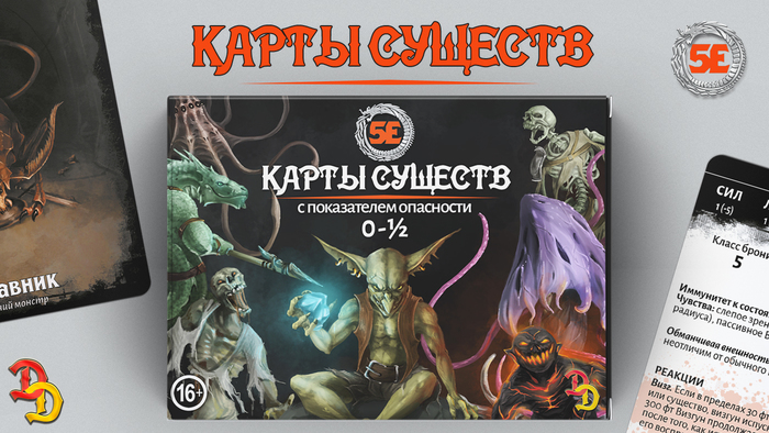 Продолжаем сравнивать «Карты существ», созданные по открытой игровой лицензии (OGL) на базе SRD5 с официальными D&D изданиями. В прошлый раз мы сравнивали существ с ПО 1-4, на этот раз мы поговорим о новой колоде с ПО 0-1/2 и посмотрим, что из официального Monster Manual в неё "не доложили".