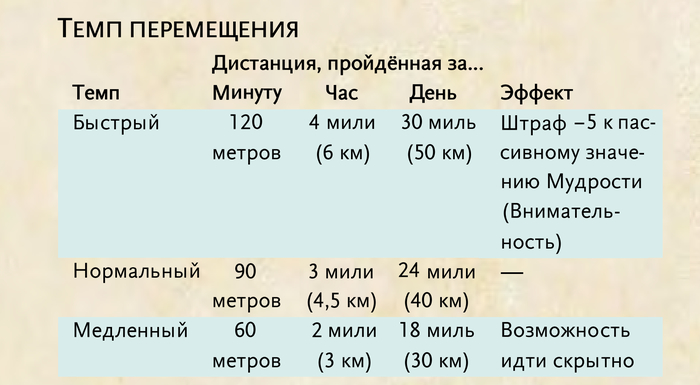 Любую скорость, включая плавание, лазание и полет. Самое неприятное - это уменьшение мобильности в бою. Ещё такой дебафф сделает невозможным побег из боя для персонажей игроков и обеспечит легкий побег для монстров от игроков. Другой важный момент - скорость путешествия. Партия может идти только на 3/4 от своего стандартного темпа.так-как замедленный персонаж в обычном темпе идёт в два раза медленнее, но сам по себе может идти в быстром темпе в полтора раза быстрее от половины. То есть 3/4 от нормального темпа.