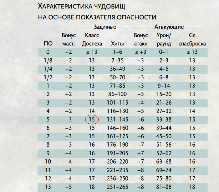 Среднее КД монстров 5го уровня опасности это 15.