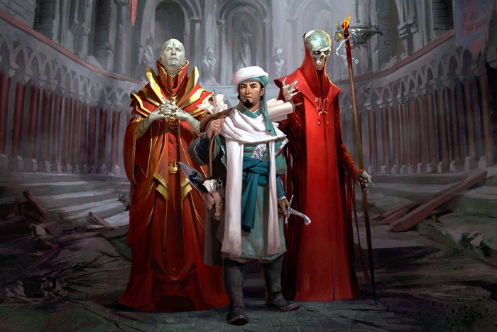 (Тэй - темная и злая империя, где жестокие Красные Волшебники бесконечно взмахивают кнутами, где стонут рабы, превращенные заклинаниями в сверхъестественных монстров в "награду" за изнурительную службу. Красные Волшебники составляют элитный класс, знать земли. Через обширную региональную бюрократию, управляемую подобранными ими тарчионами, они контролируют законы, торговлю и общество Тэя. Свободные тэйцы попадают в один из шести классов: Красные Волшебники, бюрократы, священники, торговцы, солдаты и ремесленники или квалифицированные рабочие — лишь на шаг выше простых рабов. Ни священники, ни торговцы в Тэе непривычны.