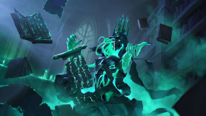 Перед нами открылось помещение со множеством книжных стоек и полок с различными документами. Пройдя чуть дальше, мы увидели витражное окно и духа, вокруг которого летало перо и что-то записывало. Пряча за спиной красный горящий кристалл, очень сильно напомнивший мне Сердце-камень дома Белатор, Призрак приветствовала нас, обращая внимание на то, что мы “Живые...”
