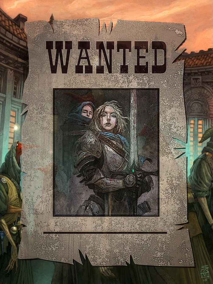Зеваки, увидев уток, быстро рассосались по мрачному Подгороду. Утка, просунув руку под мантию, достала оттуда пергамент, на котором были изображены девушка-рыцарь с ребенком на руках и спросила у Тайре видел ли он их недавно? Уткам было приказано неким, чье имя нельзя называть, привезти Тайре, но паладин сказал, что ничем не мог им помочь, потому что видел девушку только один раз в таверне “Пять сестер” и то подрался там с ней.